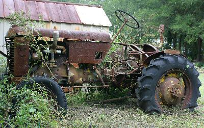 This is what Eagle looked like when we found it--after running a weedwhacker. We got it from David Blackwell, who got it from his father, who got it from an uncle. We think it originated with the Alabama road department as it was originally fitted with a sickle mower and sported yellow paint. It has been sitting up since the '70s |