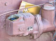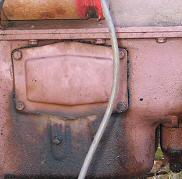 Update: The mag is firing, but we need a new battery bolt on the starter. We also need to get out some broken studs before we can mount the manifolds. We have acquired the shell of a carburetor and are looking for the internal parts. We've started a mag page, but we don't yet have photos. Still, the info might be useful to you. We learned from the previous owner that he had filled every hole with diesel. That makes us feel better about what we found in the clutch. A real bear is going to be those huge, stuck break drums. 11-14-04